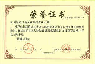2015遵义市湄潭绿色食品工业园区控制性详细规划(规划金奖)证书
