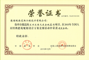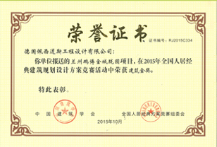 2015兰州定西天庆金域蓝湾(建筑金奖)证书